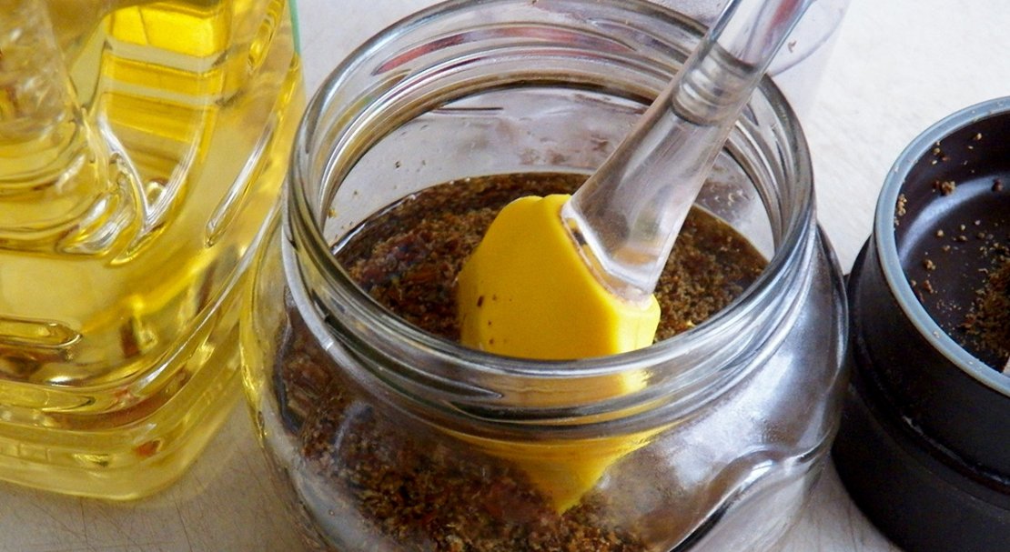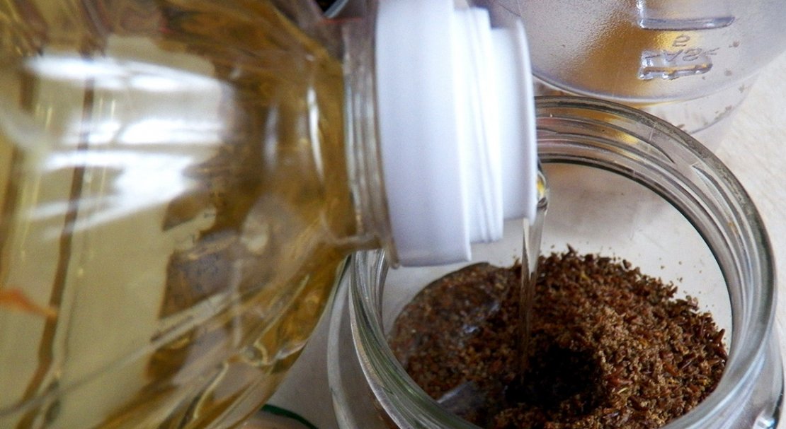- Макуха, отриманий після віджимання соку, в кількості 100 г змішують з 0,5 л нерафінованої соняшникової олії.