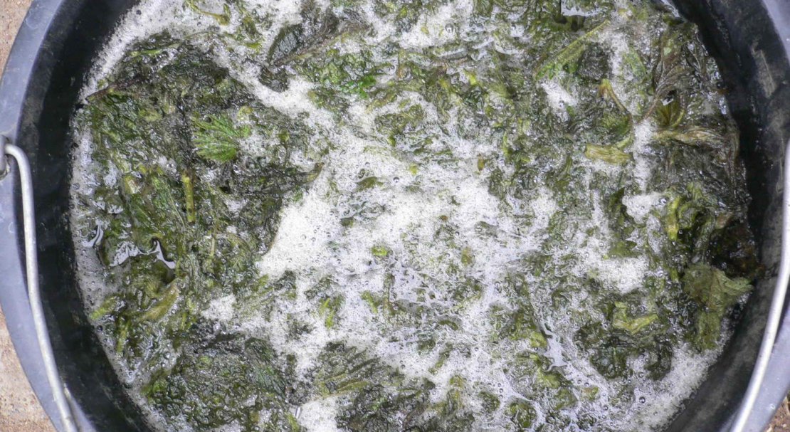 Для прискорення бродіння додають 2 ст. л. цукру. Ємність з складом виставляють на сонце і накривають кришкою. Періодично рідина помішують. Через тиждень складу відціджують, розбавляють в пропорції 1:1 з водою і проводять полив.