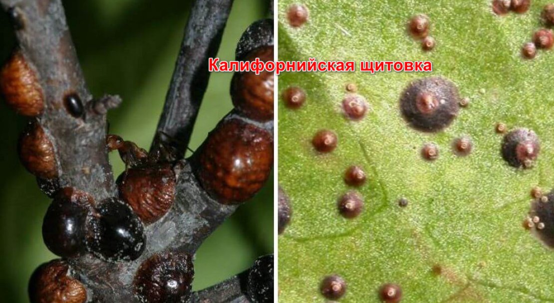 - Каліфорнійська щитівка — комаха, здатний атакувати майже кожна рослина у вашому саду. У місцях її проживання утворюються червоні плями. Вони особливо помітні на молодій корі. Перезимували личинки навесні атакують м'які частини рослини. Знищувати їх хімічними реактивами можливо до появи хітинового покриву. Для цього використовують обприскування «Актара» або «Актеллік». Дорослих комах струшують з гілок в паперовий пакет і знищують. Це необхідно, так як з-за хітину на них не діють хімреактиви.