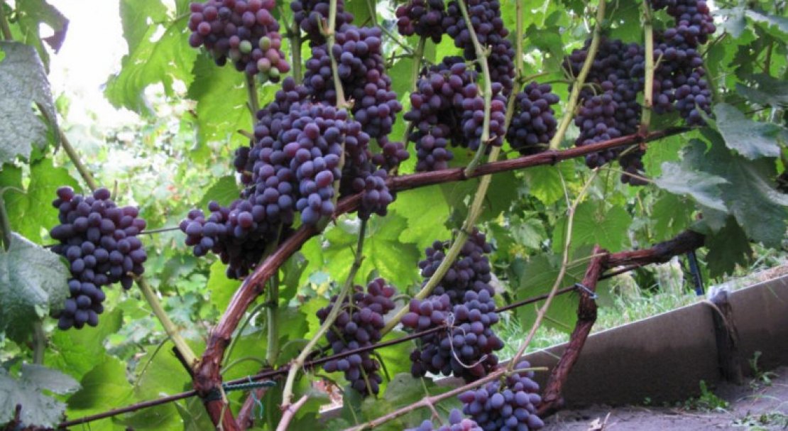 Виноградний кущ, всипане великою кількістю великих яскравих ягід, виглядає на ділянці дуже красиво.