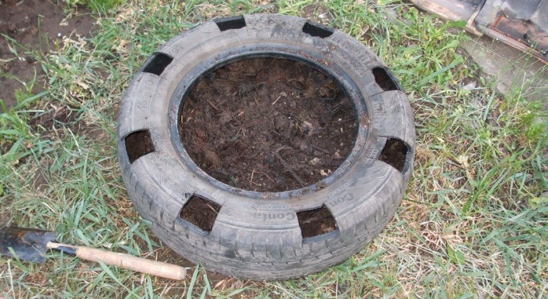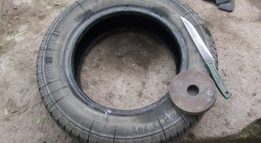 - Викопати яму, глибина якої дорівнює половині висоти самої широкої автомобільної покришки. Діаметр ями повинен точно збігатися з діаметром шини.