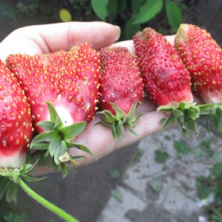 Форма плодів не рідко буває різною і незвичайною: зустрічаються ягоди у вигляді усіченого і приплюснутого конуса, більш круглі, з двома верхівками. Колір полуниці — яскраво-червоний. М'якоть також червона, але більш тьмяного кольору, щільність середня.