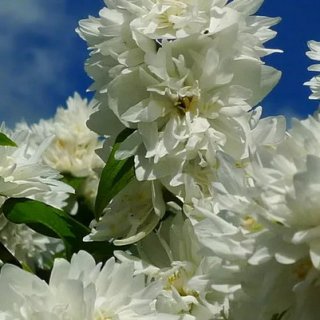 Пухнастий жасмин можна назвати одним із найвищих видів. Доросла рослина сягає 4 м у висоту. Кущ відрізняється більш ніжним та не таким солодким ароматом, як, наприклад, вінчаний або дрібнолистистий.