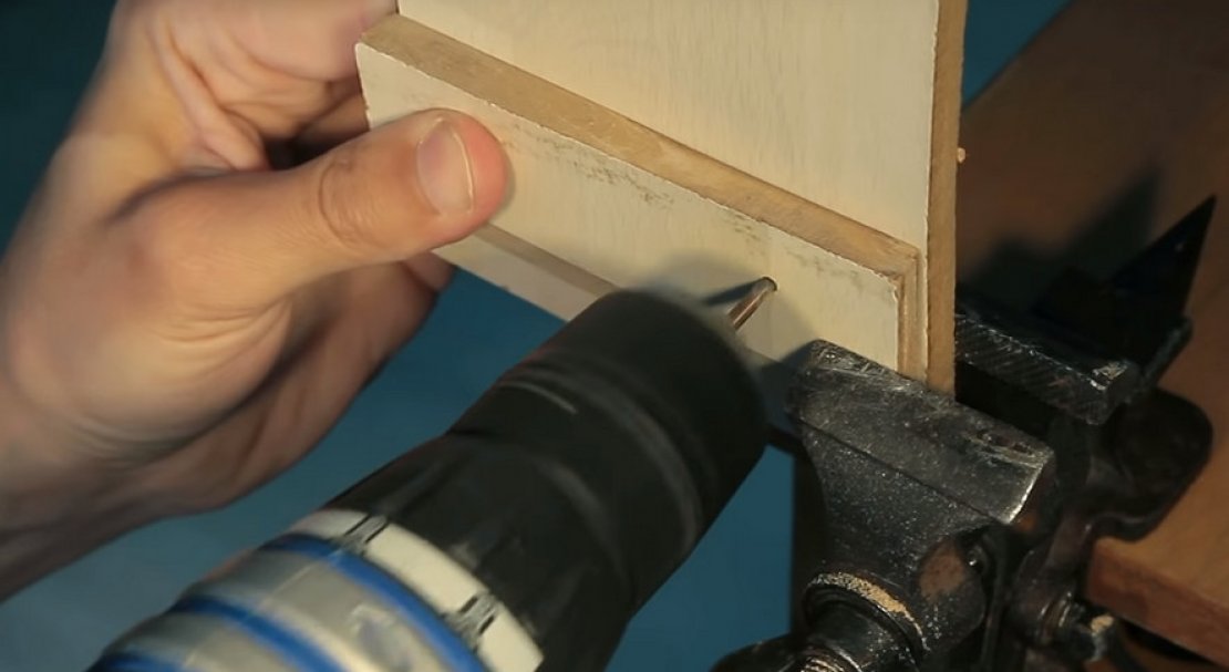- Основою верстата послужить шматок фанери (оптимальний розмір - 30×10 см). Її необхідно просвердлити з тримачем і скріпити. Відступ тримача від основи має бути 2 см.