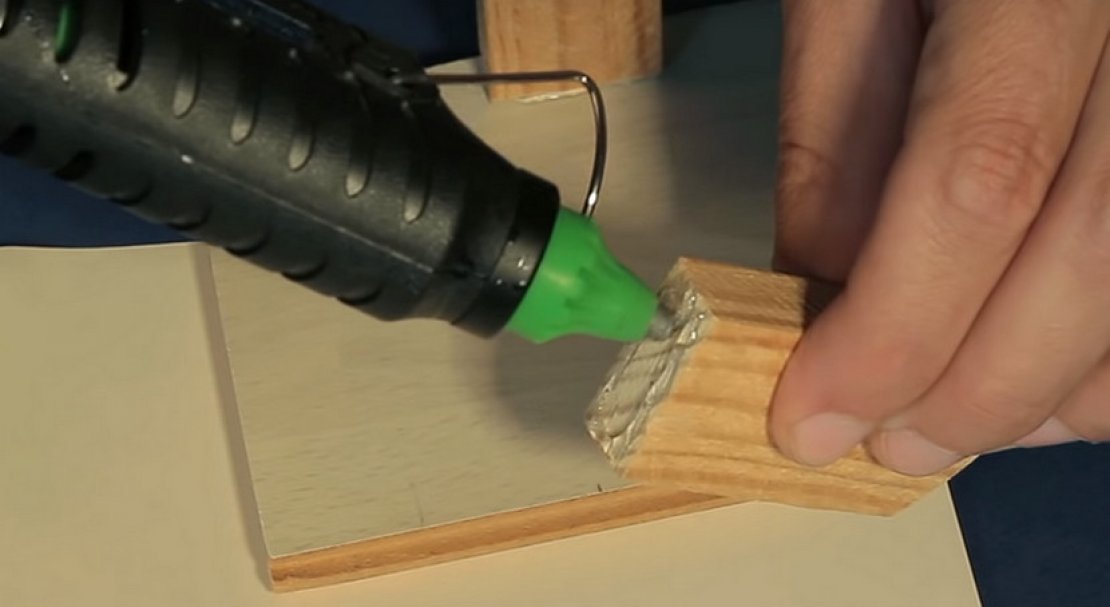 - Конструкція (поперечні та вертикальні рейки) склеюється термоклеєм.