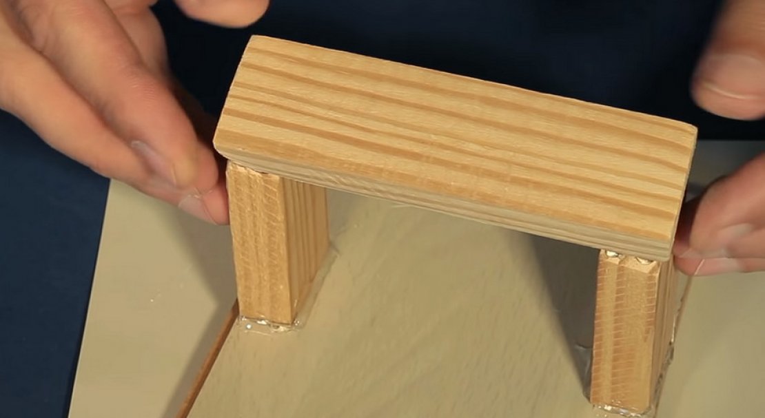 - Між куточками встановлюється брусок. В установці потрібно враховувати кут нахилу.