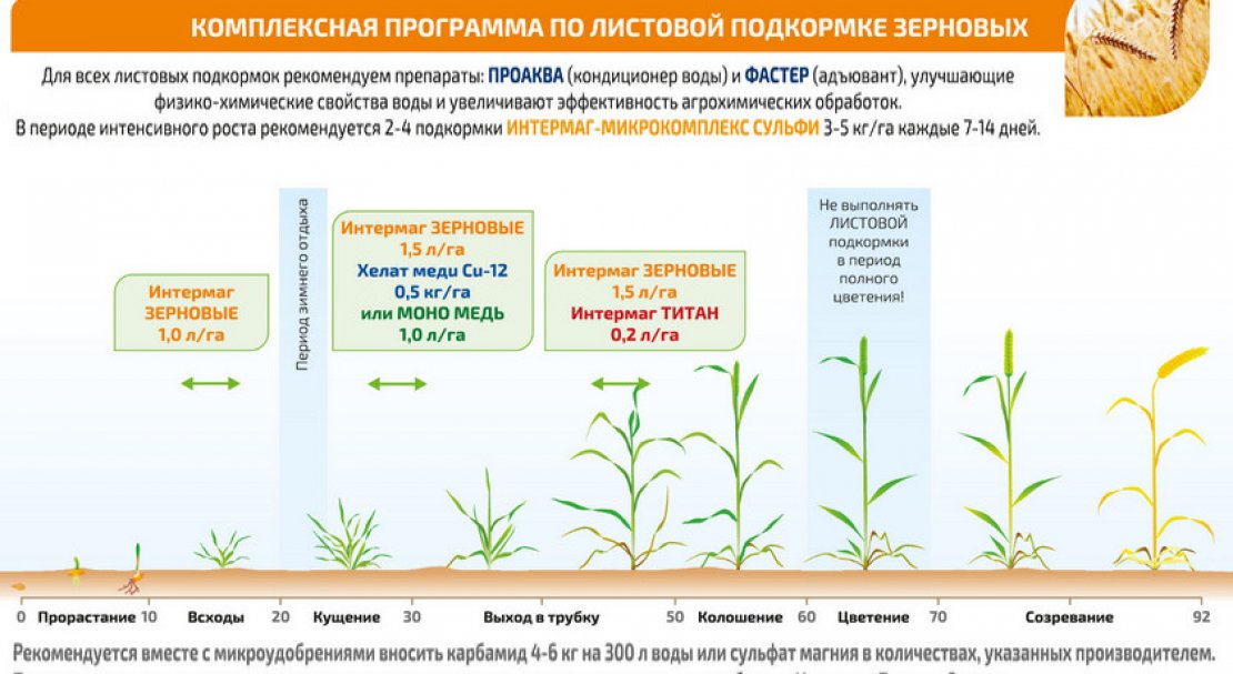 Магній забезпечує процес повноцінного фотосинтезу, що позначається на загальному стані пшениці, а сірка відповідає за обмін білків, що позитивно позначається на зростанні культури. Крім мінералів, культурі просто необхідна органіка. Для цього фермерами широко використовуються курячий послід, гній, а також перегній. Їх вносять у ґрунт при розорюванні з розрахунку 25-30 т/га.