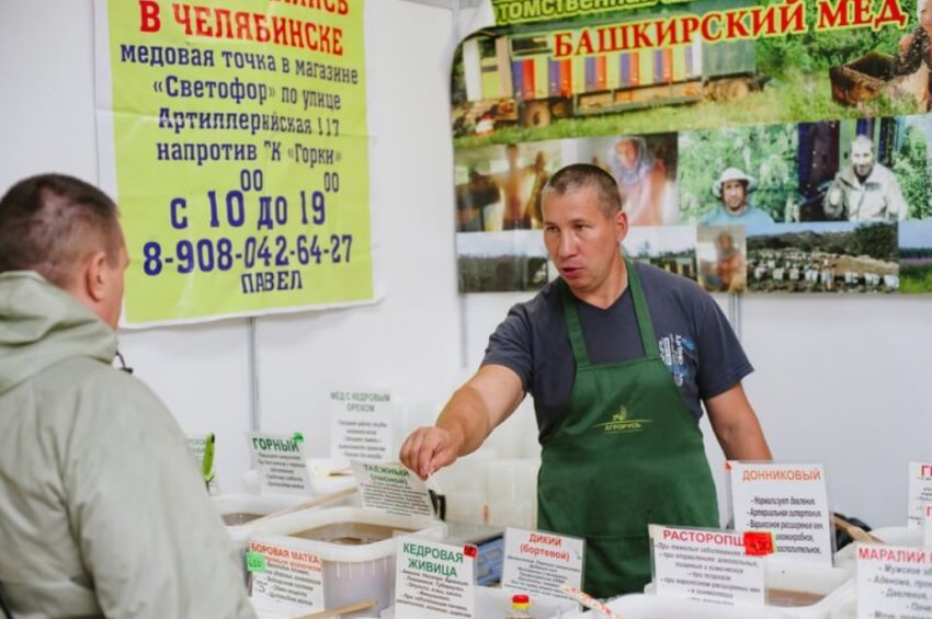 Помимо мёда на площадке можно приобрести мясную, молочную, хлебобулочную, колбасную и рыбную продукцию, кондитерские изделия и чай.