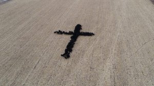 Своє творіння Хенсон приурочив до свята Різдва: на полі, де пасеться худоба, фермер створив живу інсталяцію у формі хреста.