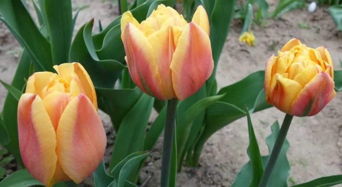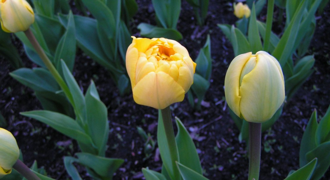 Що стосується більш пізніх сортів, вони помітно вище, інколи можуть мати дуже великий бутон, діаметром до 10 см і більше. Такі тюльпани зазвичай починають цвісти приблизно через півмісяця після ранніх, однак їх цвітіння триває довше, часом до першої половини червня. Вони чудово виглядають з будь-якими іншими видами і досить довго стоять у зрізаному вигляді.
