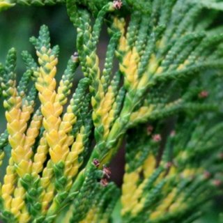 - насичено-зелена хвоя лускоподібна довжиною до 0,4 см, яка щільно прилягає до паростку, у деяких сортів на зиму може буріти, через 2-3 роки обсипається разом з дрібними гілками;